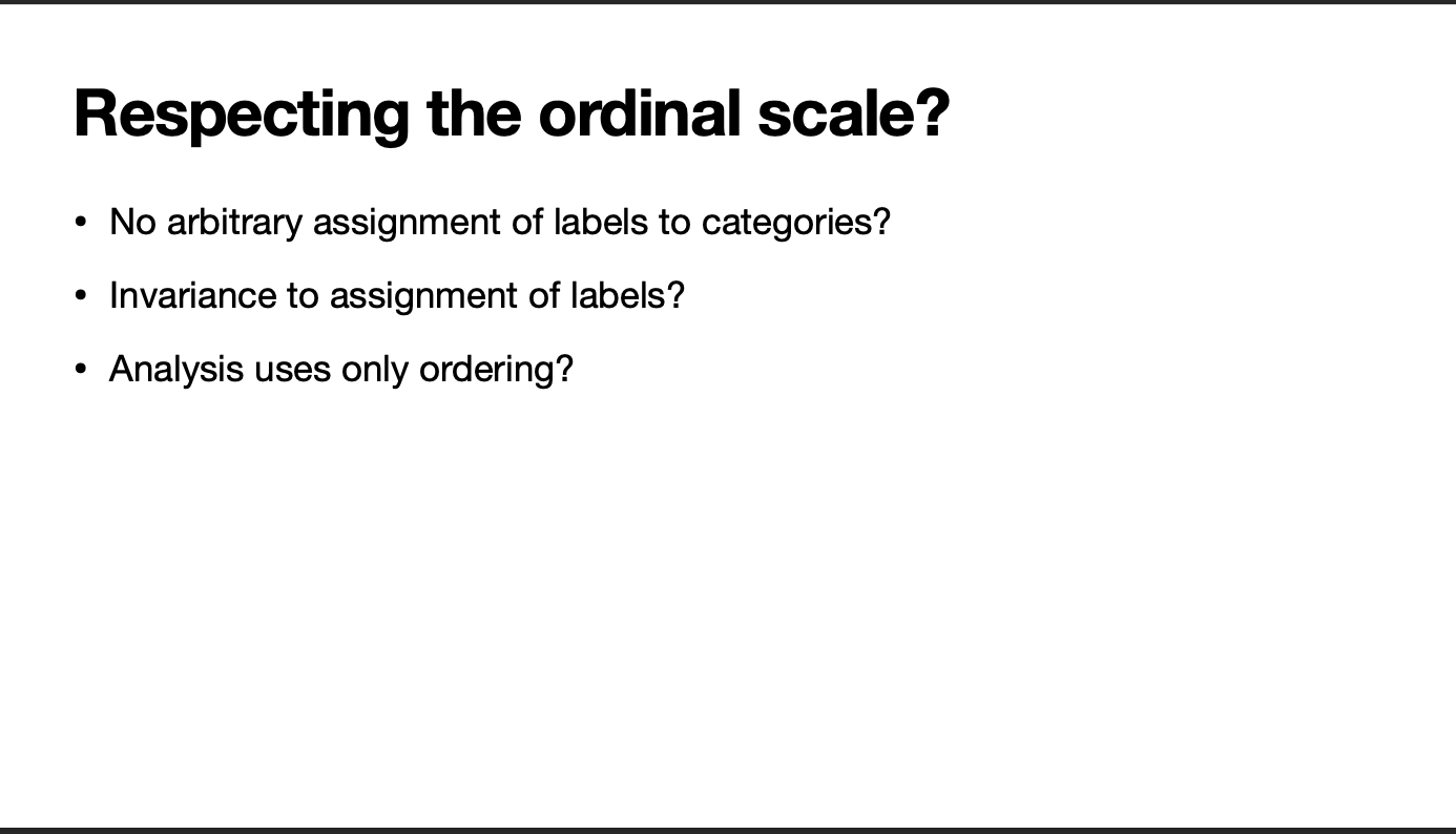 What does it actually take to respect the ordinal scale? These are some claims that people have made about what you need to do with ordinal data