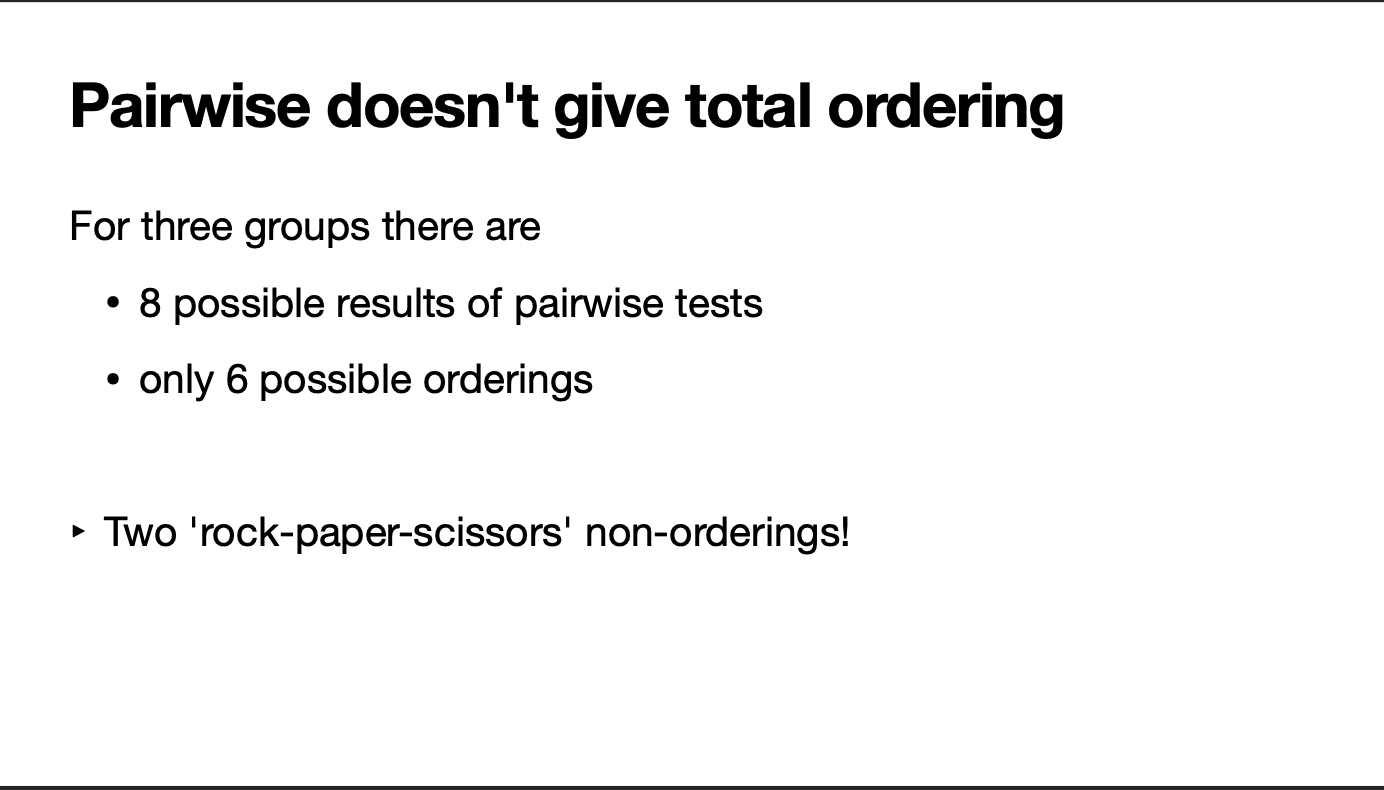In this setting the other two sets of results are perfectly non-ordered “rock-paper-scissors” comparisons.
