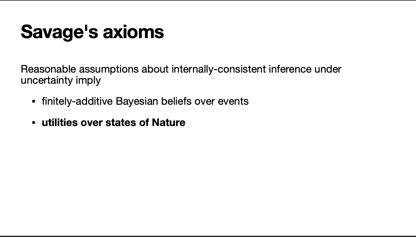 Savage’s axioms are usually invoked by smug Bayesians against frequentist testing, because of the first part of the conclusion.